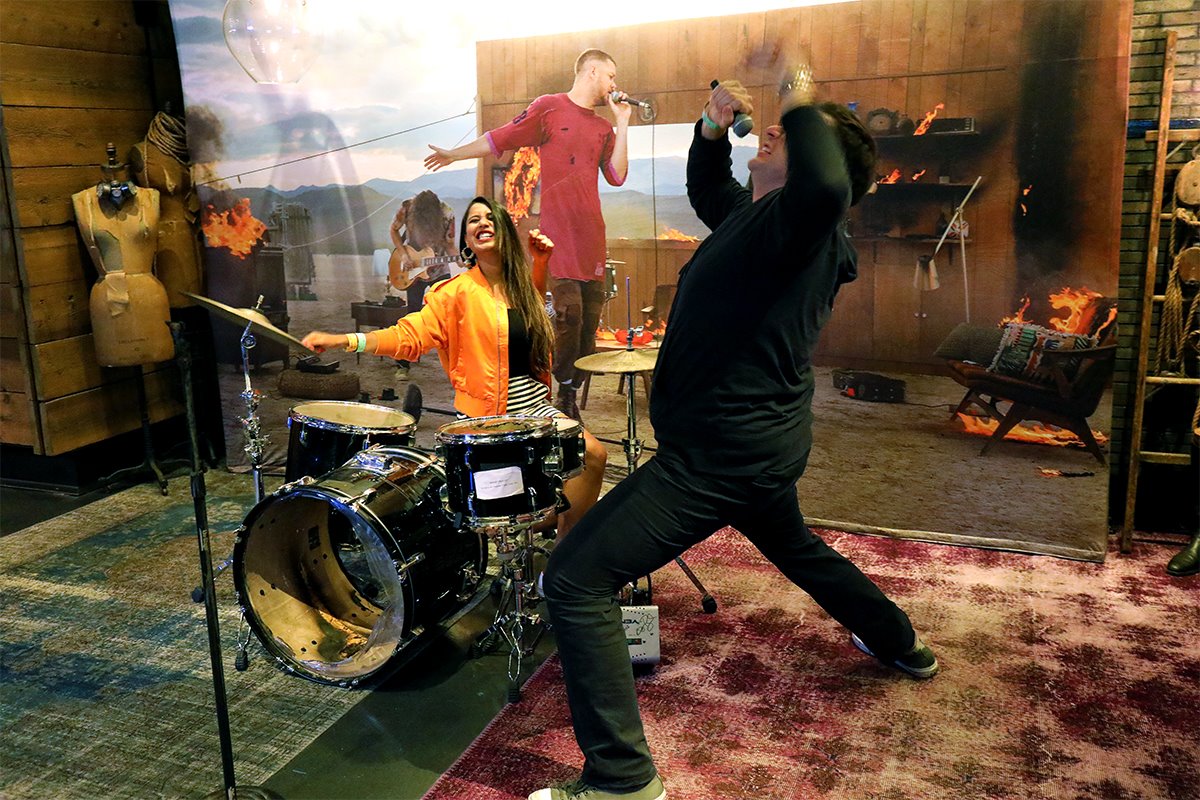 A section of the VIP area that included real Imagine Dragons instruments that came from their music videos.